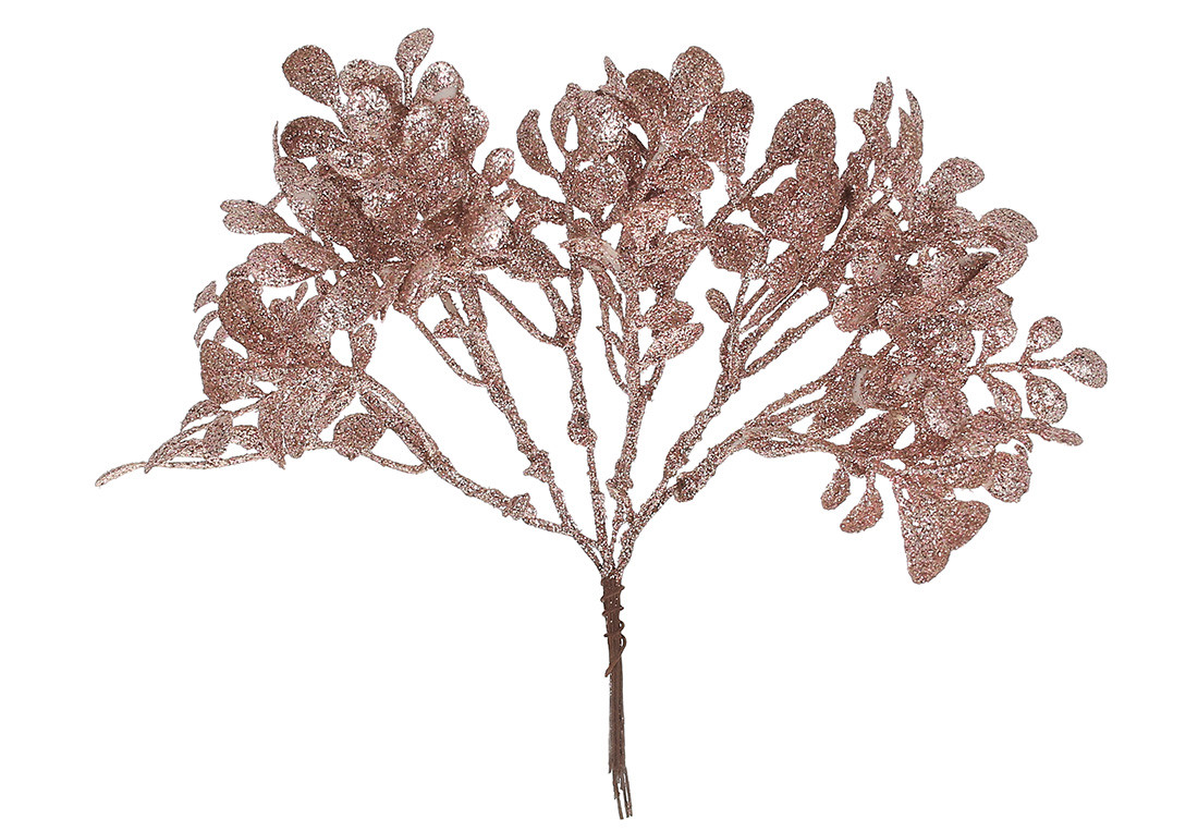 Пучок листя в гліттері рожевий, 19см - 12 шт УПАКОВКА ТОВАР ВІД ВИРОБНИКА